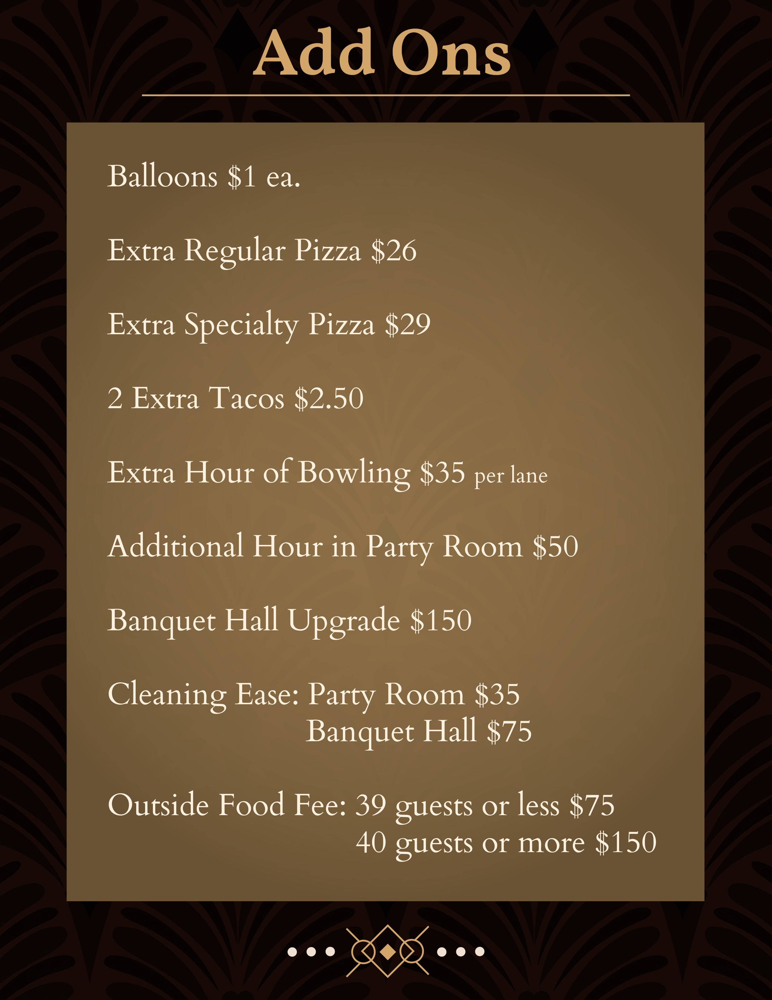 We can host your group event or adult party right here. No matter what the event, a bowling party gets everyone involved!